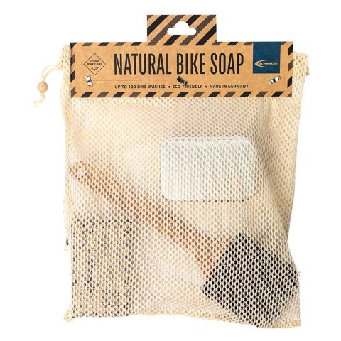 Quite simply, it lasts a very long time and can be developed in a very environmentally friendly way. It has an excellent cleaning and degreasing effect and is highly foaming. The dirt particles on the bike get wrapped and can be washed off afterward, without scratching. The soap also has fat dissolving properties. It‘s all very simple.
